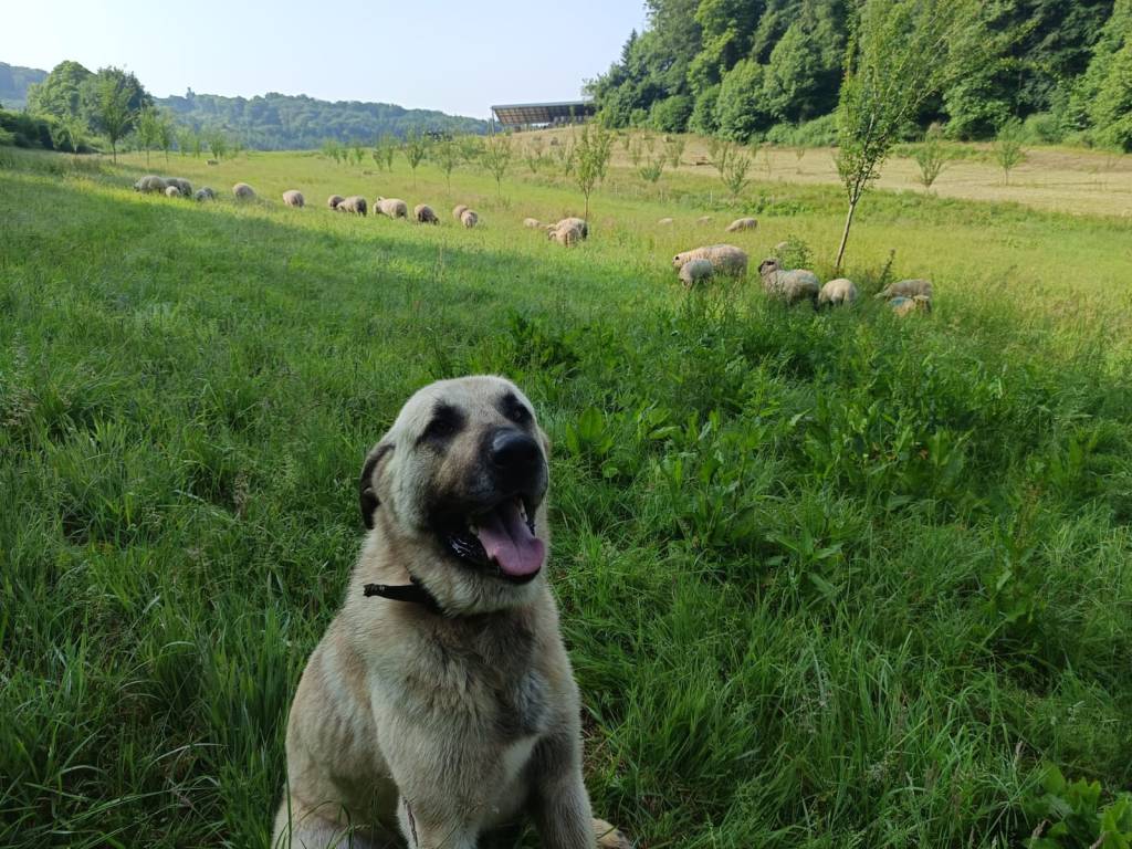 Il nous a fallu 2 ans pour envisager et valider l’idée de travailler avec des chiens de protection. Et pour l’avoir fait, grâce notamment au soutien et à l’aide financière d’amis et de l’association biodynamique d’Alsace-Lorraine, nous nous demandons aujourd’hui pourquoi nous ne l’avons pas fait plus tôt. Nos moutons shropshires sont mieux avec la présence des chiens. Heureusement car nous avons subi entre 2016 et 2017 de nombreuses attaques reconnues et non reconnue. Nos chiens étaient trop jeunes.
